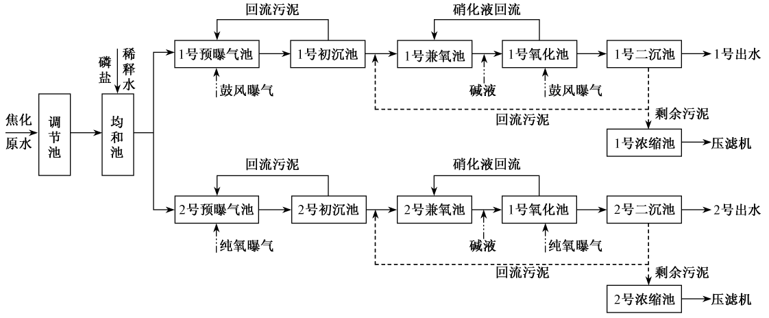 衛源曝氣生化系統包括均質調節池、均質池、反硝化池、硝化池,還包括污泥處理系統和輔助系統(其它系統的進料泵、儲藥系統、冷卻系統等未列入其它系統的單體設備)。